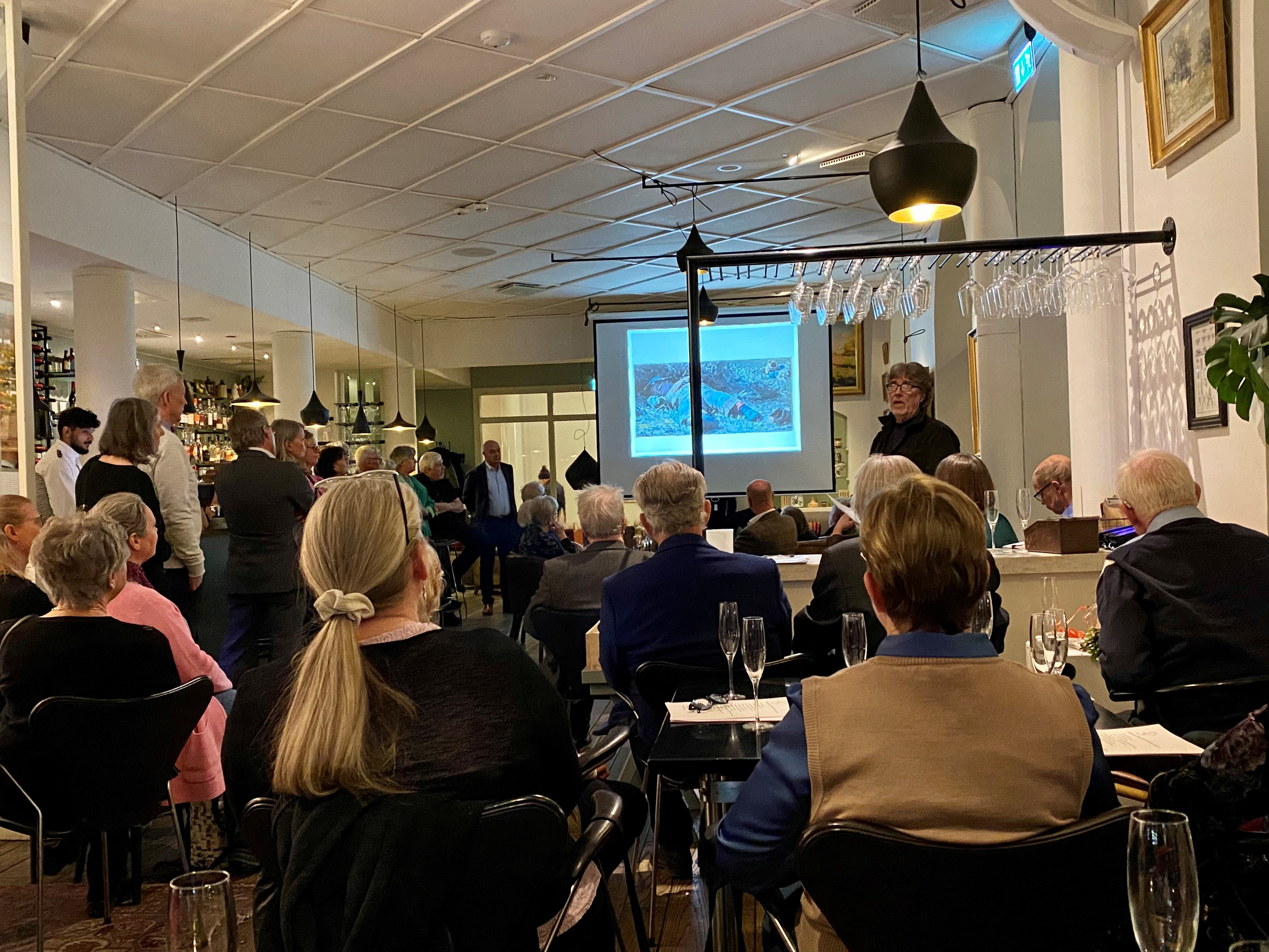 Kvällen fortsatte med att Hans Nilsson, emeritusprofessor i historia vid Linköpings universitet föreläste om konstnären Johan Krouthens liv och konstnärskap. Ett stort antal verk av Johan Krouthen finns att se på restaurangen. Efter föreläsningen minglade vi och tittade på konstverken innan kvällen avslutades med middag på restaurangens glasveranda.