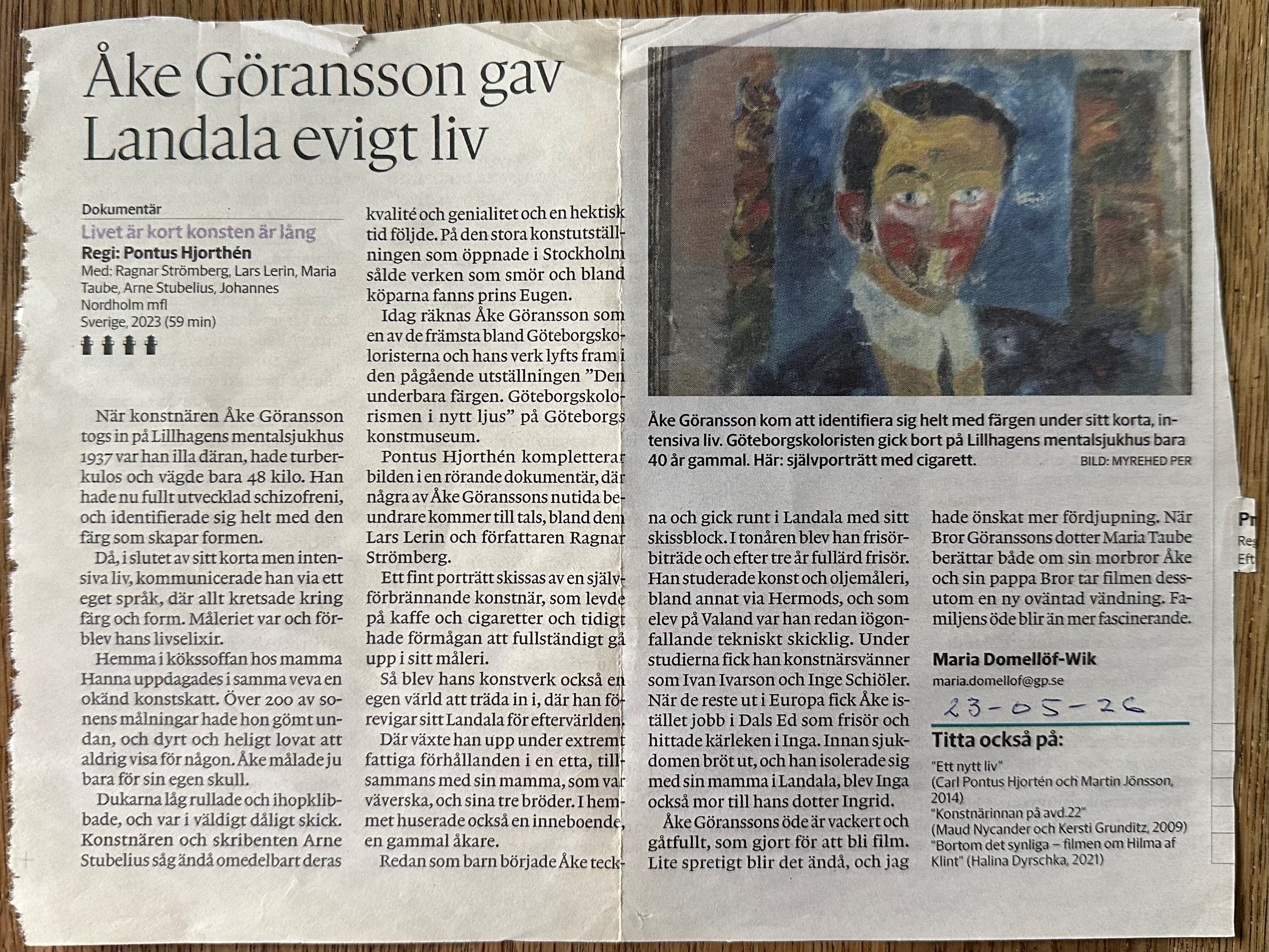 Filmen är en konstdokumentär om Göteborgskoloristen Åke Göransson, 1902-1942. som just nu visas för fullsatta hus runt om i landet.