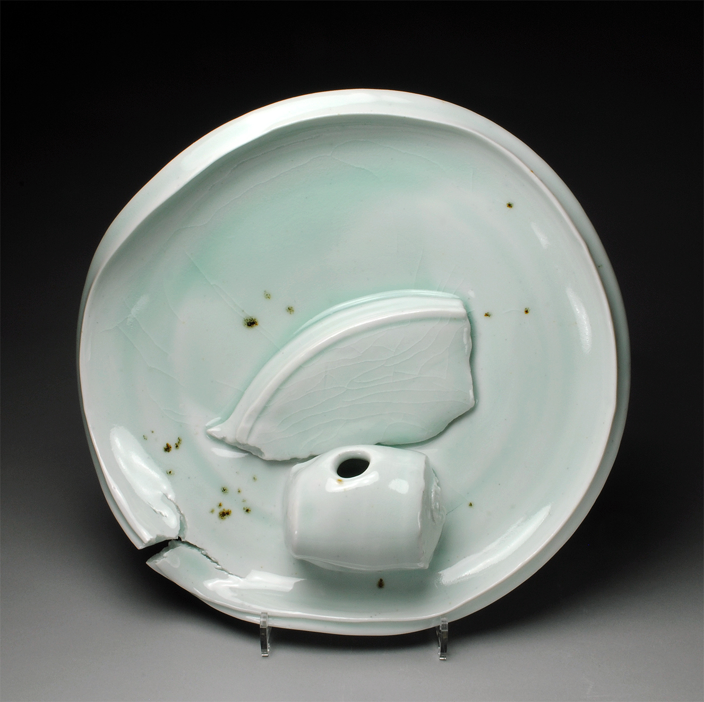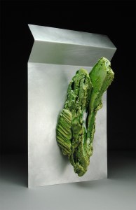 ”Arbetet med dessa skulpturer i lergods och aluminiumplåt tar avstamp i de japanska torra landskapsträdgårdarna Karesansui. Trädgårdarna har berört mig starkt genom dess suggestiva uttryck. Den organiskt formade keramiken står i kontrast mot aluminiumplåtens geometriska uttryck och för mig framkallar skulpturerna bilden av ett stycke konstruerat landskap, en trädgård i koncentrerad form. Mina skulpturer har en tydlig avgränsad yta, liksom de trädgårdar som inspirerat mig. I betraktarens öga kan denna begränsade yta bli till ett eget universum”.