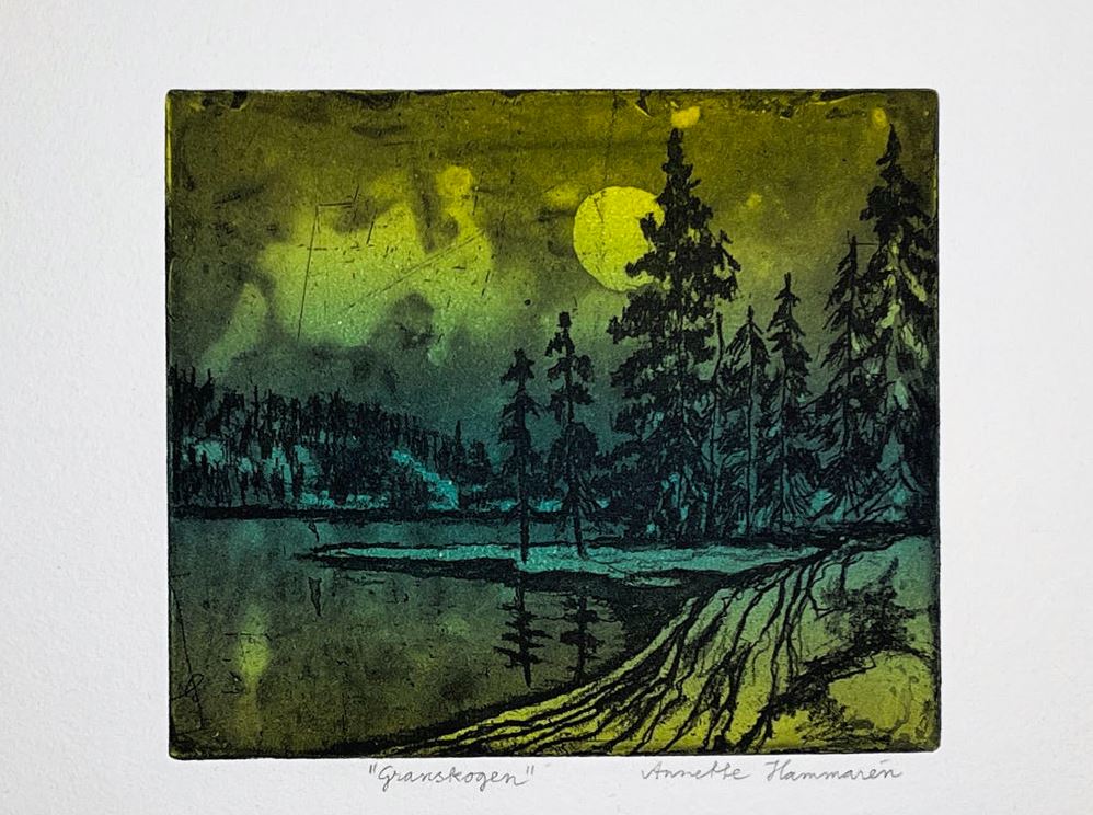 Grattis till vinnaren av 2024 års Jullotteri. Segraren valde Pelle Perlefelts målning Skogen 2.